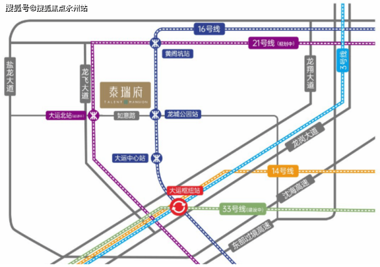 地铁:紧邻地铁16号线龙城公园站(约600米),2站大运枢纽。距21号线大运北站(规划中,约50米),10站南山;33号线(建设中)/深大城际(建设中)4站深圳北枢纽、5站西丽、8站前海;