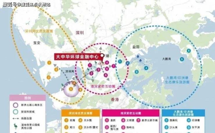 香港特区行政长官林郑月娥,于《2021年香港施政报告》中提出,香港将元朗及北区占地约300平方公里的土地,对标“维港都会区”建设为人口约250万人宜居、宜业、宜游的“北部都会区”,实现真正意义上的港深融合。其规划的“双城三圈”,其中“双城”是香港和深圳,“三圈”即由西至东分别为深圳湾优质发展圈、港深紧密互动圈、大鹏湾/印洲塘生态康乐旅游圈。罗湖口岸作为港深融合桥头堡,同时位于“港深紧密互动圈”中心,【大中华环球金融中心】当之无愧的双城C位。