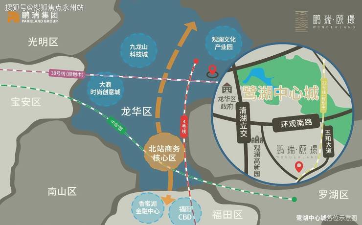 项目位于龙华区观湖街道五和大道与澜清一路交汇处,地处鹭湖新城核心板块,紧邻观澜高新园区。该片区被定位为“科技行政文化核”,与深圳北站商务区共同构成龙华区“双核中心”,是龙华区打造“数字龙华,都市核心”的重要载体。