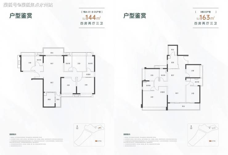 高端改善:144-163㎡四房三卫