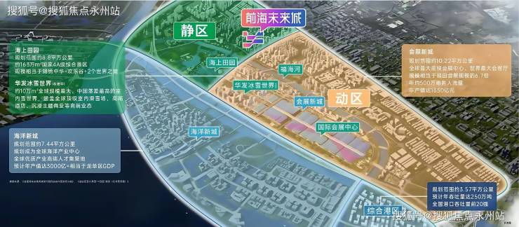 项目所在会展海洋城是前海扩容后的新中心,规划为“三城一港”(国际会展城、海洋新城、会展田园城、综合港区),聚焦会展经济、海洋经济及冰雪文旅产业。周边配套全球最大国际会展中心(32万㎡)、华发冰雪世界(在建)及金蚝小镇历史街区,形成产业+文旅双驱动格局,吸引高端人才与资本聚集。
