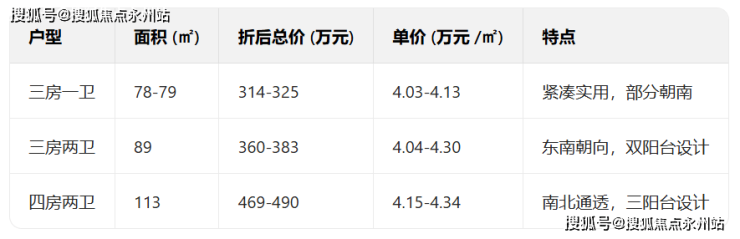 刚需入门户型(78-79㎡三房一卫)作为项目高性价比之选,该户型布局紧凑实用,空间利用率高,部分朝南房源采光优越,配备全屋收纳系统,适配三口之家。折后总价314万-325万元,单价约4.03万-4.13万元/㎡,其中低楼层特惠房源总价可低至290万起,进一步降低刚需购房门槛。