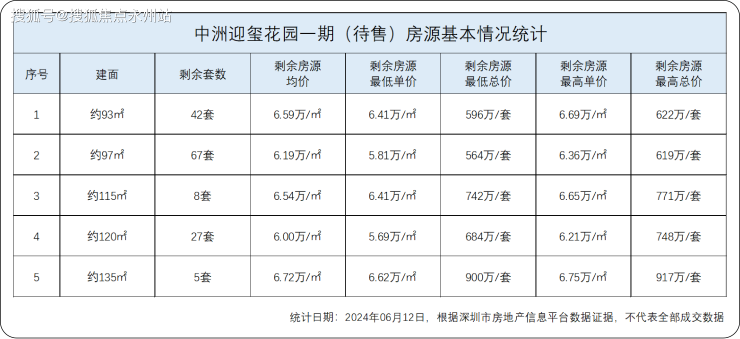 根据深圳市房地产信息平台公开信息数据显示,目前还有149套待售的房源,其中93㎡户型剩42套、97㎡剩67套,115㎡户型剩27套,135㎡户型剩5套。需要注意的是该数据只能参考,那些定金还没录入合同的也包含在里面,真正能选的房源没这么多!中洲迎玺_售楼处_Vip Tel:400-992-0669 中介勿扰