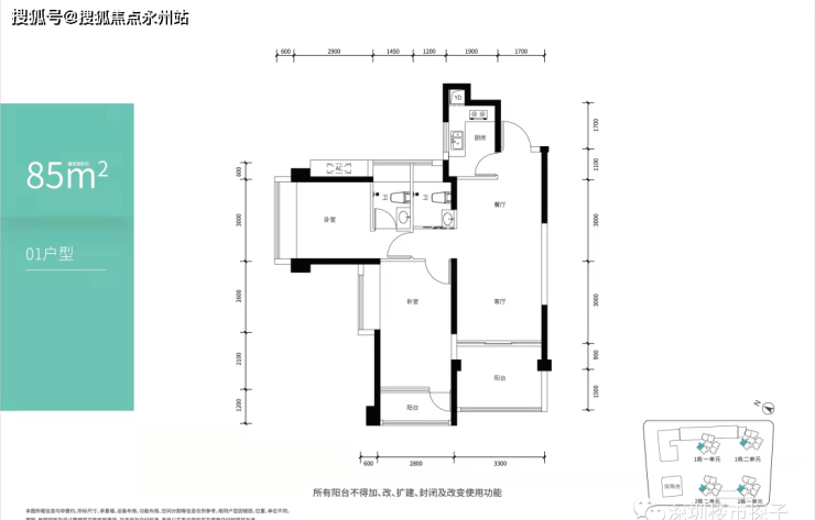鸿荣源壹城中心本次住宅户型为84-95平米