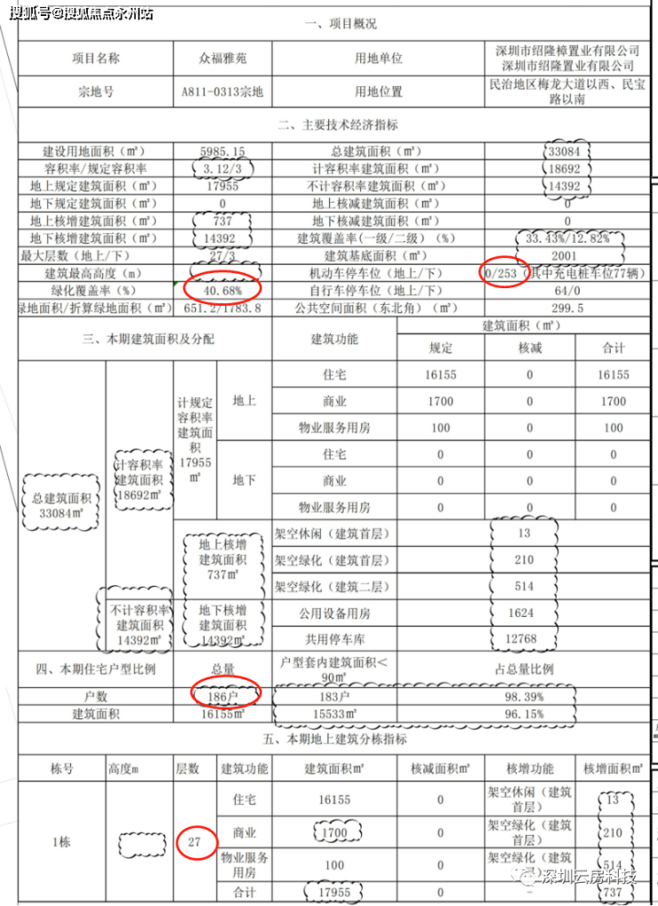 众福红山印位于龙华大道和民宝路交汇,占地面积约6000㎡,建筑面积约3.3万㎡,项目由1栋高层分两个单元住宅、商业裙楼配套组成,整体朝向为正南偏西,容积率约3.0,绿化率40.68%,总户数186套,面积段由79-89-100㎡的三房至四房组成;