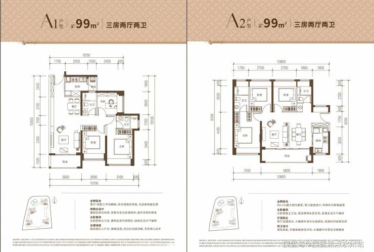 A2—99㎡—3房2厅2卫,横厅南北通透,5.8米客餐厅大开间,LDKB一体化设计,四开间朝南,5.8米阔景阳台(约8.7㎡),采光通风拉满,空间感远超同面积户型。