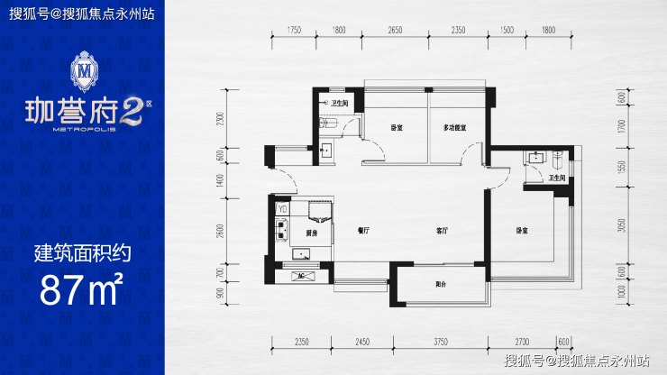 | 约87㎡(横厅)三房两厅两卫 折后总价约445-458万