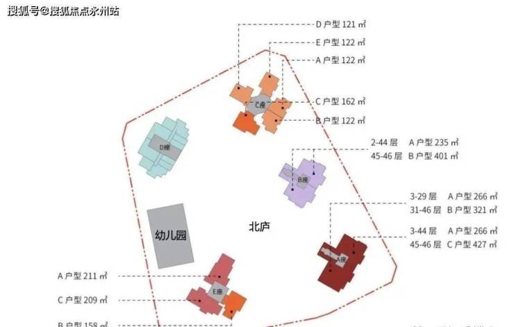 1栋B座:148米,46层,共84户,朝南为主,三梯两户,约235平,401平(顶复)