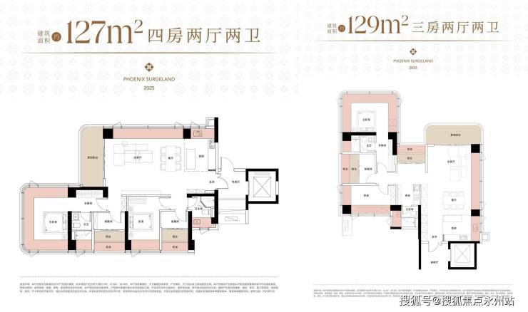 户型格局:开放式横厅设计(127㎡),竖厅格局(129㎡)