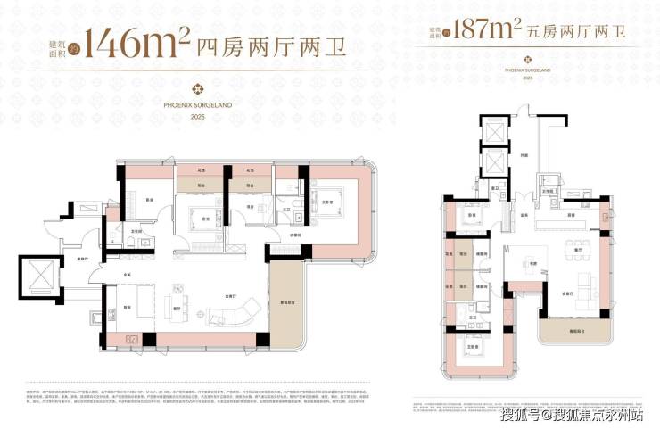 建面约146㎡四房两厅两卫:是127㎡户型的升级放大版,东南朝向,直面沙头角湾海景,主卧及客厅双阳台形成"270°环幕海景剧场",得房率约105%(含赠送面积)可视为127㎡户型的升级版本,空间尺度更大。