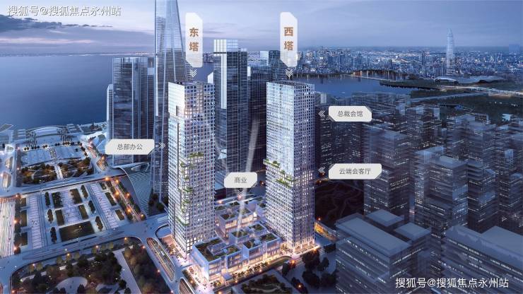 总建筑面积约25万㎡,集总部办公、总裁会馆、云端会客厅、商业四重总部业态于一体,实现四大功能业态的互动互联,打造总部菁英生活新趣处。