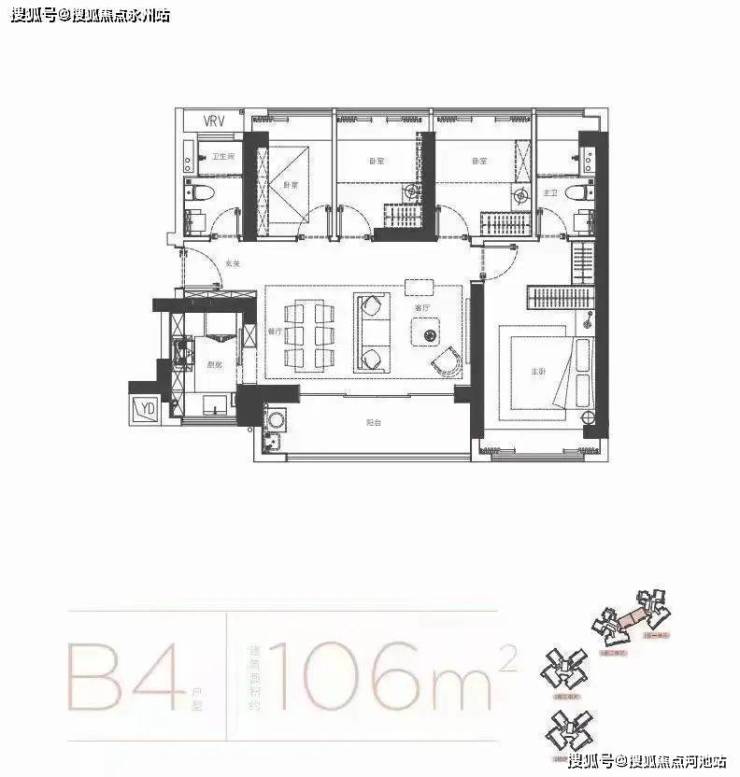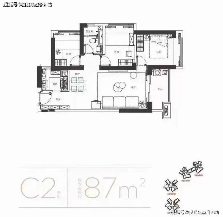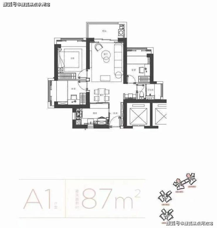 项目住宅总户数为1056户,推出建面约87㎡三房两厅一卫、约96㎡三房两厅两卫、106㎡-121㎡四房两厅两卫,共计3种大类户型。