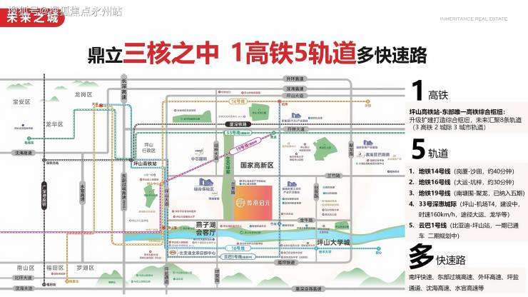 地铁:16 号线技术大学站(已运营)、规划19号线聚龙站(距离项目800米),30分钟直达福田中心区。