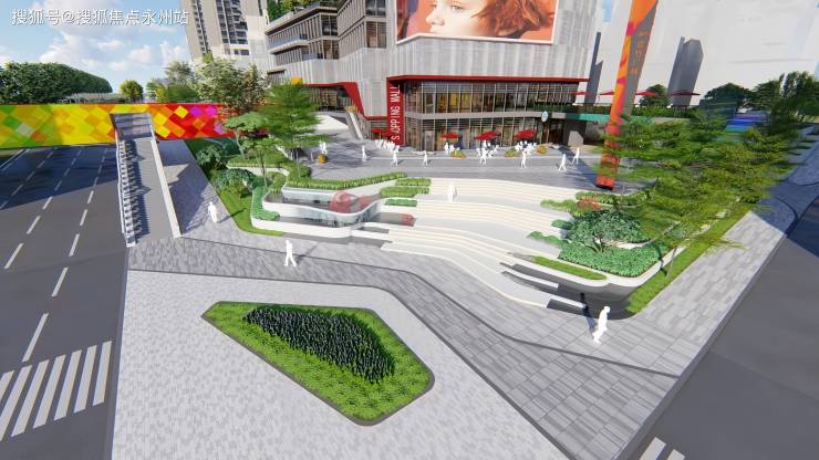 家门口的公园:前广场规划设置艺术草阶,打造相互融合、一体化的景观空间体系,漫步悠闲随心所享。