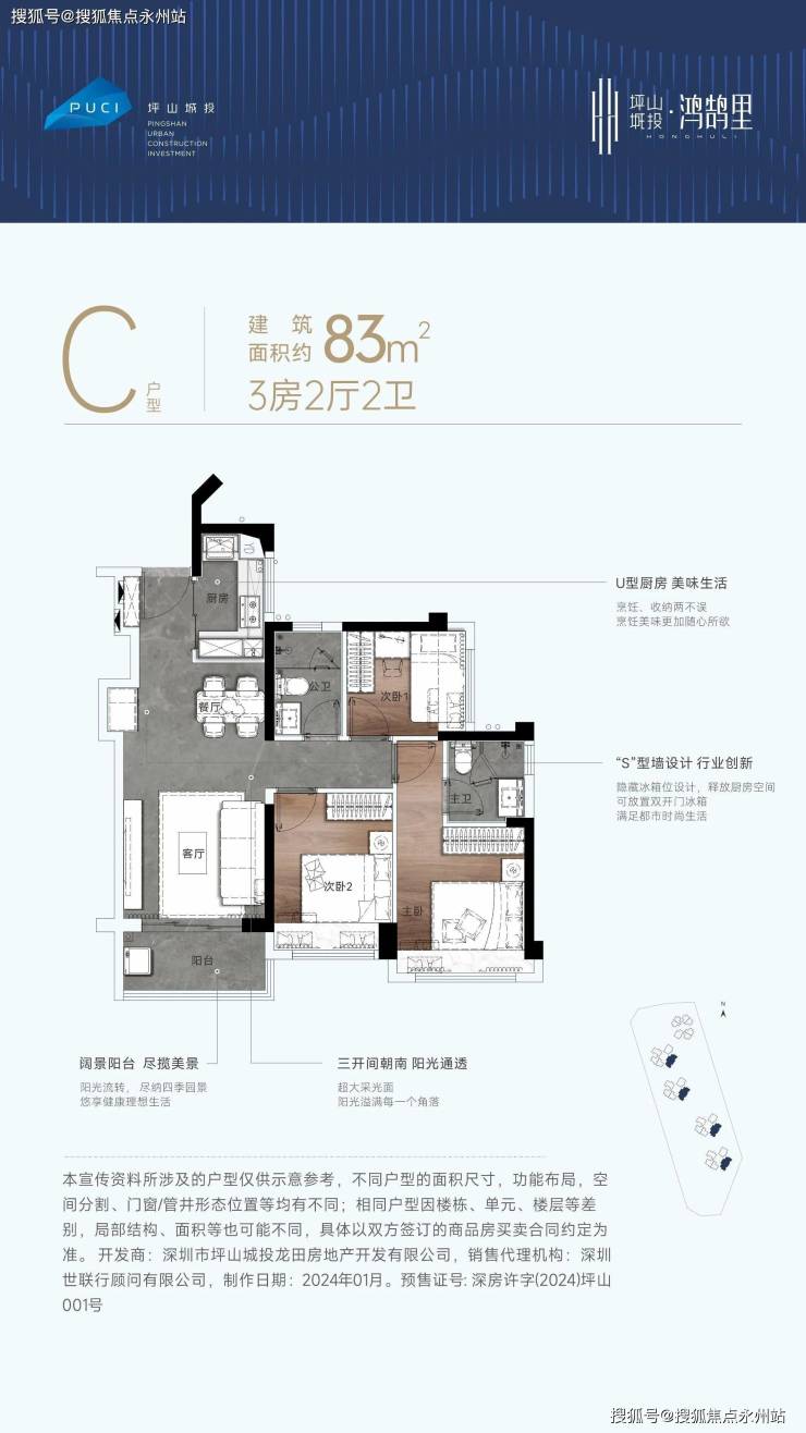 73㎡三房:西南朝向,折后总价 176-220 万元,单价低至 2.4 万元 /㎡起,为深圳东部刚需置业最低门槛之一。