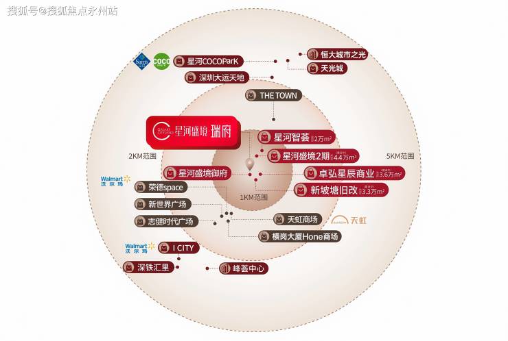 自持商业+商圈环伺:二期自带4.4万㎡集中商业,1公里内卓弘星辰(3.6万㎡)、山姆会员店(5公里)等,5公里覆盖星河COCO Park等百万级商圈。