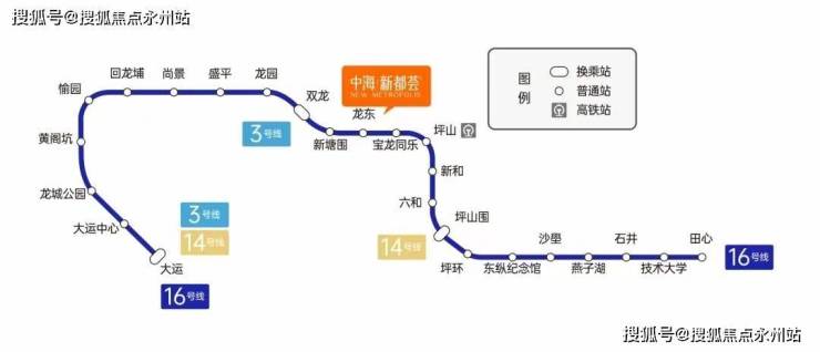 项目家门口就是16号地铁线“龙东站”,该线路是起自坪山田心,开往龙岗大运枢纽的普线,2站可到坪山高铁站,11站到大运站可换乘3/14号线。