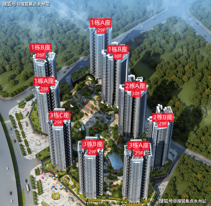 面积:69-113㎡2-4房 车位比:1715个(约1:1)