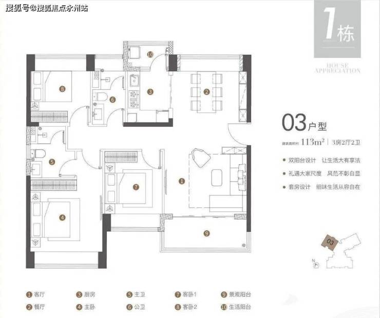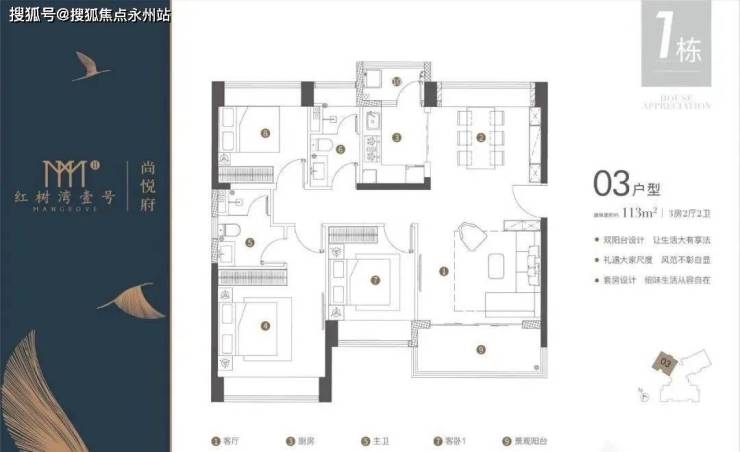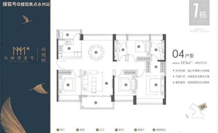 项目推出户型面积为:110㎡3房2厅2卫、113㎡3房2厅2卫、约143㎡4房2厅2卫
