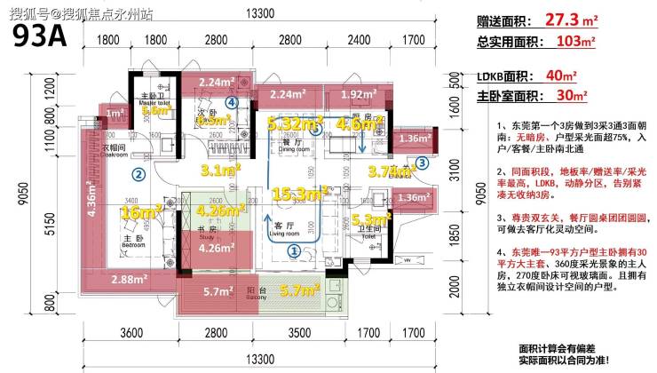 A 户型:南北对流的 LDKB 洄游大方厅设计,主卧面积约 30㎡,配备双洗手盆卫生间。