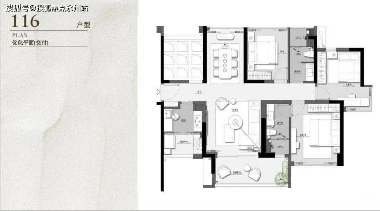 建面约116㎡,原始结构是三房两厅两卫两阳台或三阳台,奇数层是客厅和厨房配有阳台,偶数层是餐厅、主卧和厨房都配有阳台,奇数偶数层入户玄关处都有一块镂空,搭板可以多一个卧室,不能搭的话整体户型结构、功能间配比及分布也还是合理的。