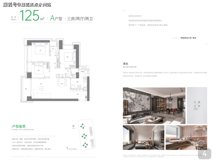 建筑面积约125㎡A户型:瞰景三房,飘窗、阳台拉开居住视野,主卧私享功能产备