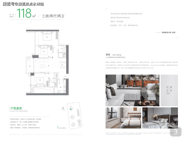 118平三房两卫:做到了客厅卧室同一朝向,且都朝西南,采光面非常足,双龙抱珠的走廊浪费较少,整个空间感会更好,独立玄关也让隐私性更好。