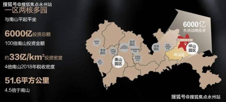 世界一流科技园:坪山区是深圳专项政策支持区域,与光明、河套三足鼎立;规划约51.6k㎡坪山高新区,相当6个南山高新区,三大千亿级产业、四大国家级产业基地集群,预计2030年总产值将达10000亿,擎动湾区经济腾飞。