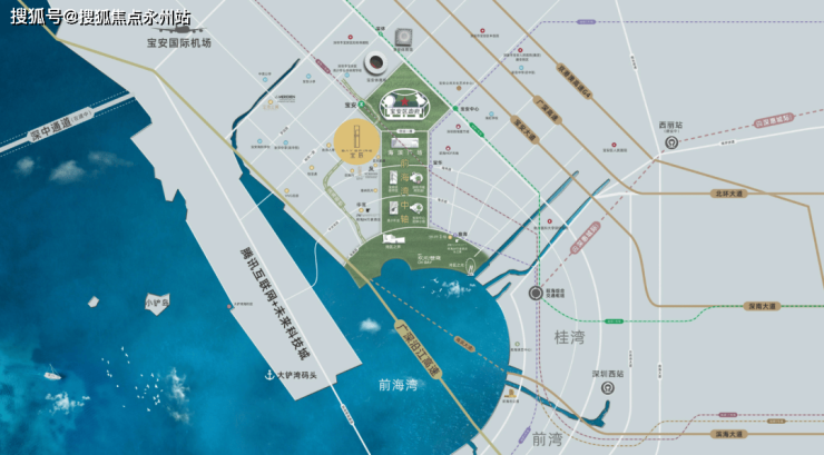 项目坐落于深圳市宝安区新安街道,紧邻宝安大道与北环大道交汇处,地处前海湾中轴线的核心位置。这里不仅是深圳西部滨海城市的精华所在,更是连接粤港澳大湾区的战略要地。项目周边交通网络四通八达,地铁11号线宝安站直通项目,更有1、5号线等多条地铁线路环绕,构建了一个多维立体的交通网络,让出行变得无比便捷。