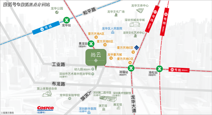 ⭐4号线(已开通):龙华站直线距离约1000m,深圳纵向城市交通中轴。