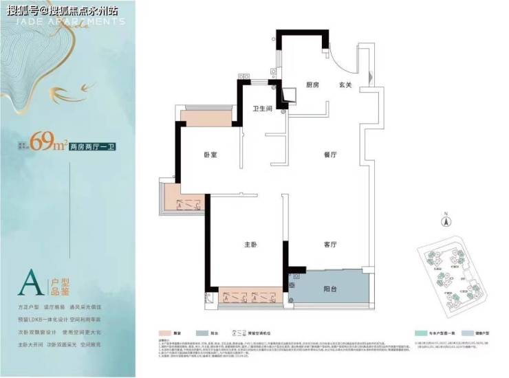 建面约69㎡两房:此户型虽为两个卧室,但带有三大飘窗,更加巧妙的是,预留了LDKB一体化设计空间,更好的延伸室内空间,冰箱位置外移,释放厨房空间,小户型也有大空间的享法。