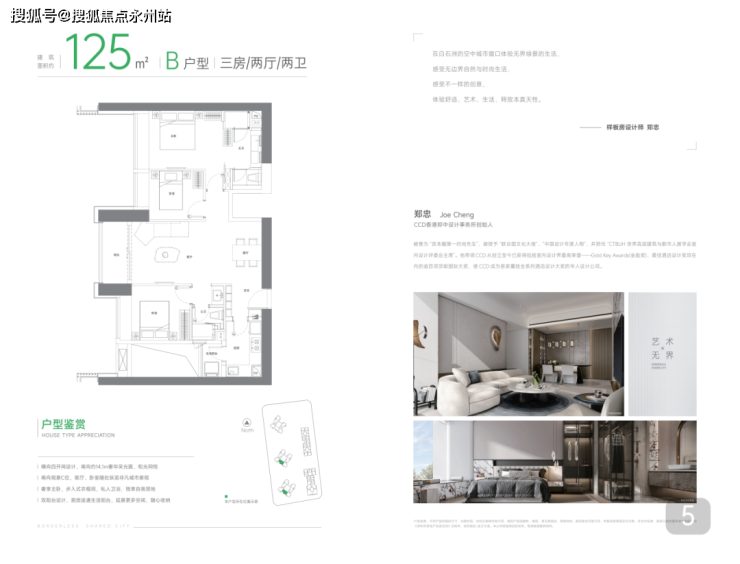 建筑面积约125㎡B户型:横向四开间设计,南向约14.1m奢华采光面,和光同悦|南向观景 C 位,客厅、卧室随处纵览非凡城市景观,奢享主卧,步入式衣帽间,私人卫浴