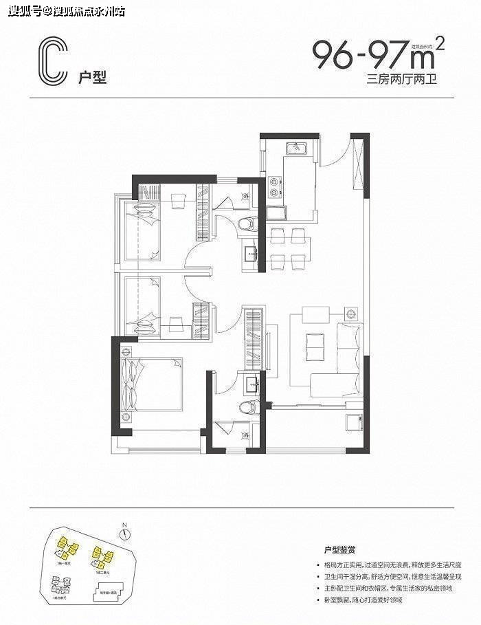 96-97平方米的3房2厅2卫