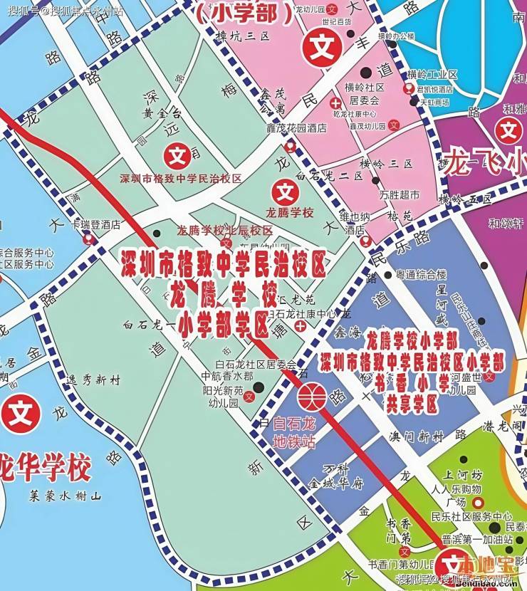 初中方面有深圳外国语学校龙华校区:市直属名校,2018年开办,79个班规模,2023年中考成绩位列龙华区前三,对口初中大学区;格致中学民治校区初中部:与小学部同校,预计2027年正式投用,强化九年一贯制教育优势,玉龙学校初中部:补充学区资源,步行约1.5公里。