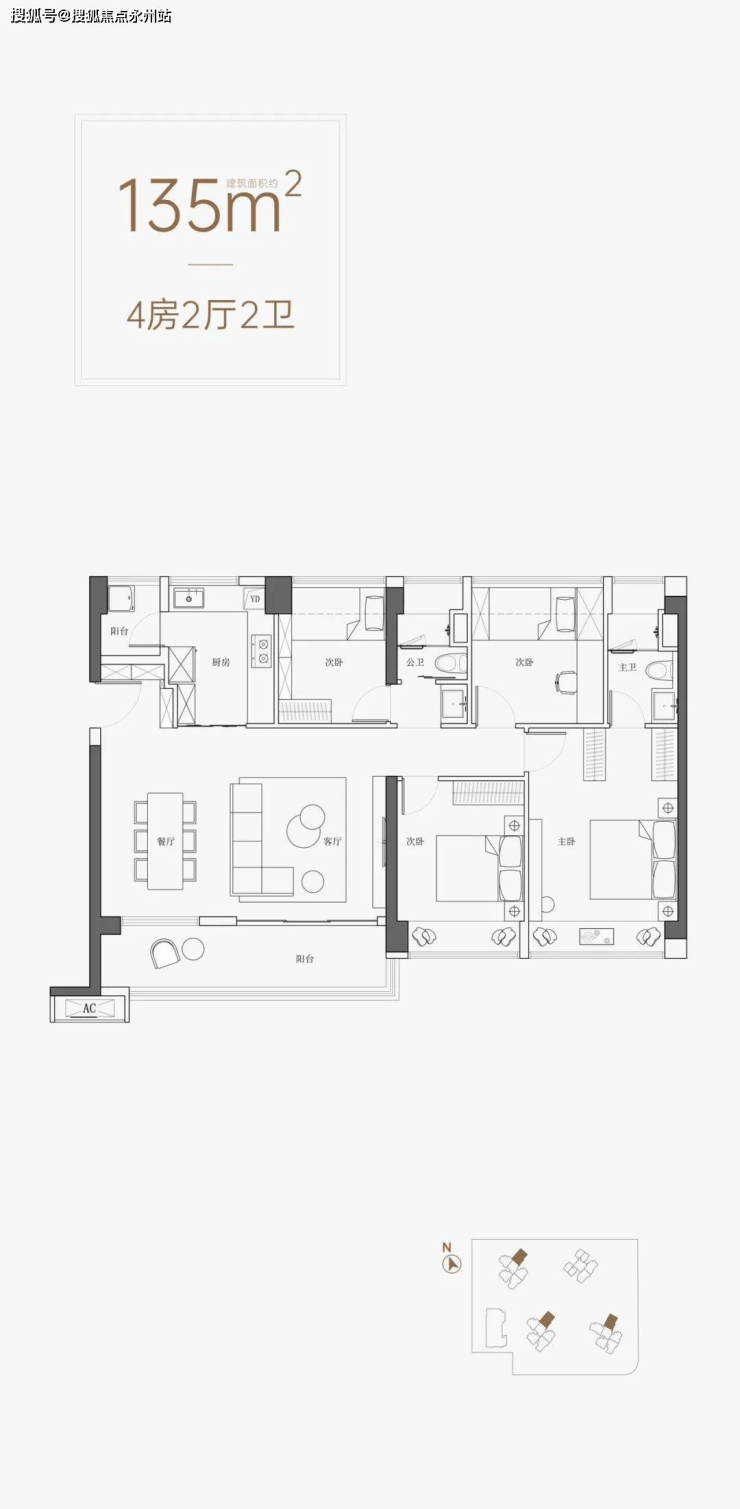 项目总户数是706户,其中可售房源约573套,其它是回迁房,主力户型是建面约97㎡三房两厅两卫、约112-116㎡四房两厅两卫、约135四房两厅两卫,另外还会有少量回迁户选剩下的56㎡两房两厅一卫。