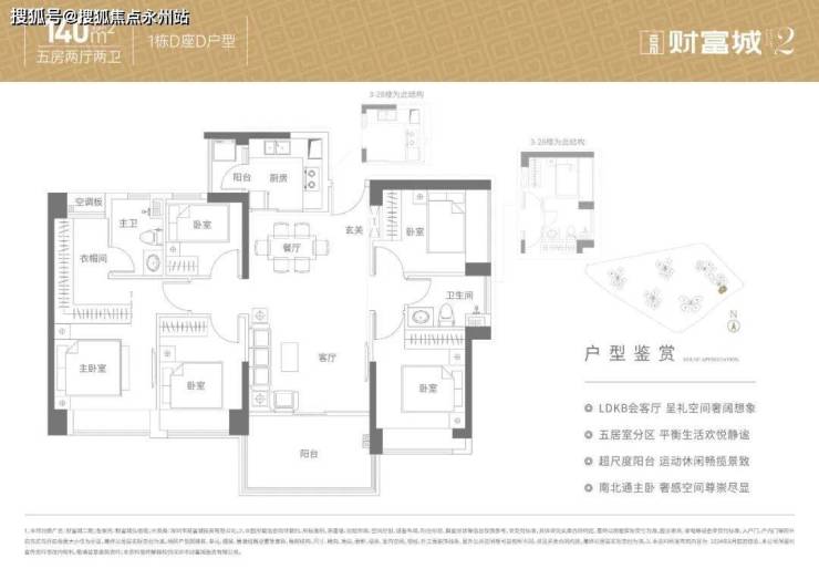 140㎡的5房2厅2卫,折后总价504-532万/套,单价3.6-3.8万/㎡。