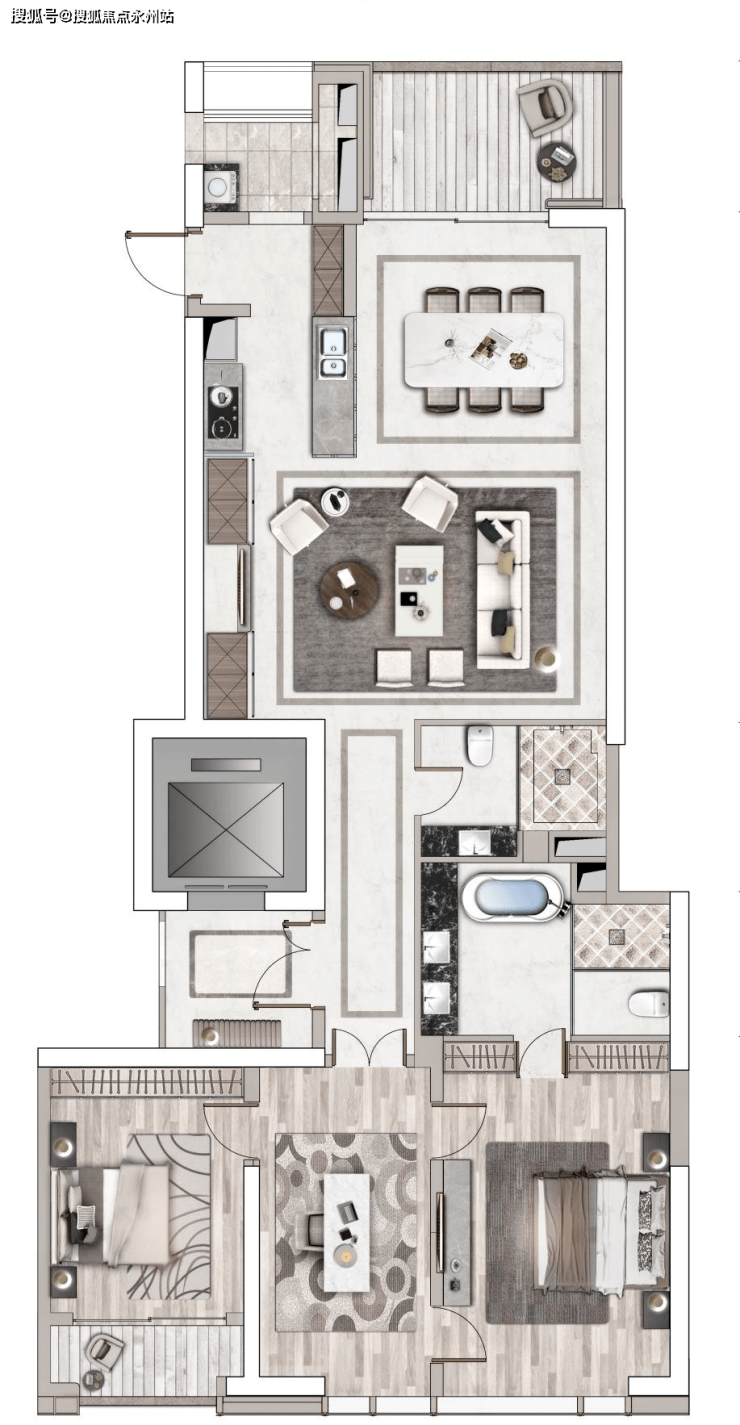 在售产品:A栋专梯入户160-220㎡2-3房;B栋三梯五户45-125㎡1-3房