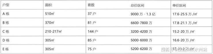 总价范围:210㎡户型3000-3600万;302-307㎡户型5100-5500万;370㎡户型6300-6700万;510㎡户型8300万起,顶复产品总价破亿。