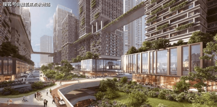 近40万方商业,SHOPPING MALL、街区商业、社区商业等,一条长达1.1公里的中央绿轴串联多元商业空间,商业主题涵盖城市顶奢、潮人艺术、高端社区消费、先锋潮流等不同类型。