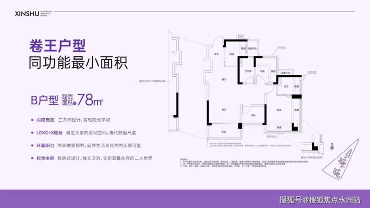 建面78㎡舒适三房:折后总价448-520万,单价5.90-6.73万/㎡,刚需主流优选户型。