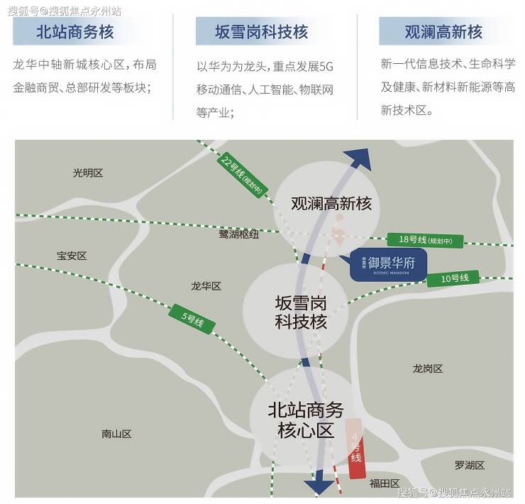 产业支撑:观澜高新区已并入深圳国家高新区,形成以锦绣科学园、观澜高新园为核心的数字经济产业集群,聚集华为、富士康等头部企业,