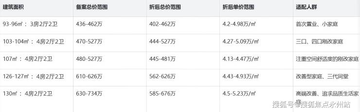 各户型价格明细(精准适配)结合户型面积与优惠政策,各户型折后价格进一步降低,具体价差清晰,方便不同预算人群选择,详情如下表: