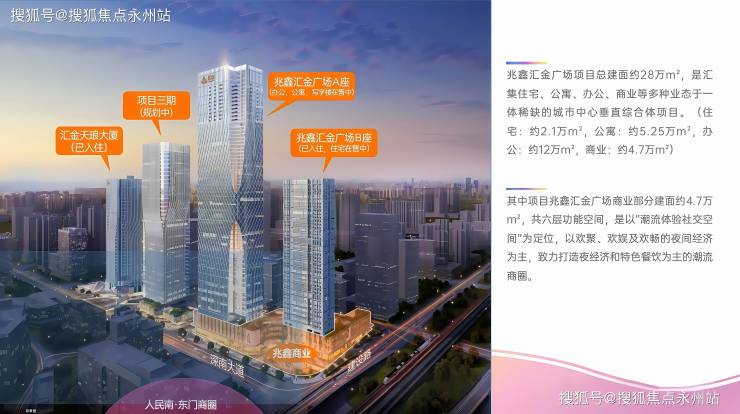 兆鑫汇金广场项目占据深南大道400m沿街封面,262m地标高度,是金三角城市更新首发之作,涵盖了商业办公、商务公寓、总裁公寓等业态的约28万㎡综合体(深圳罗湖兆鑫汇金广场售楼处电话:400-992-0669)