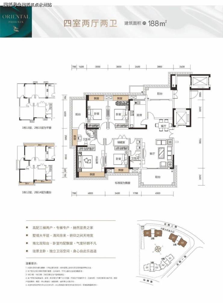 1、2栋 三梯两户,188㎡四房两厅两卫