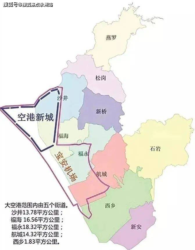 涵盖宝安沙井、福永、航城、福海、西乡5条街道,总面积约95平方公里,相当于6个前海的面积。