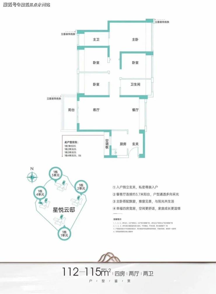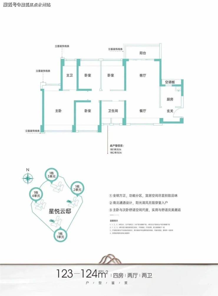 主力户型建面约95-124㎡臻品三至四房,启悦城市美好未来