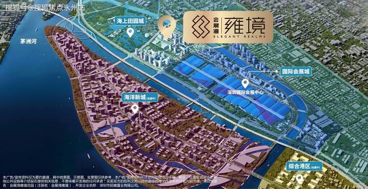 项目位于深圳市宝安区核心区域,是前海合作区扩容后的重要组成部分,地处粤港澳大湾区“黄金内湾”东岸与广东沿海经济带“黄金中轴”的交汇处,毗邻华发冰雪世界(在建)、宝安国际会展中心片区,海上田园、海洋新城。