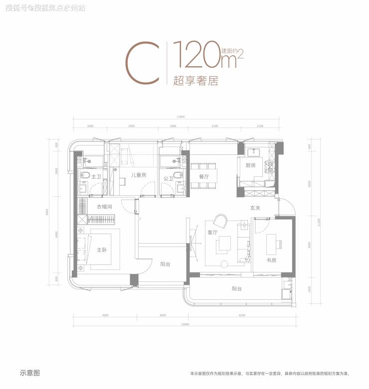 120㎡四房:总价约 480-550 万元,单价 4-4.58 万元 /㎡。