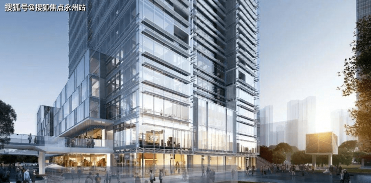 幕墙造型上,光洁的正立面与东西侧凹槽、格栅相衬形成丰富肌理,呈现出横向线条轻盈灵动的格律,在中心区楼厦之间脱颖而出,也赋其生活空间以更当代的质感、更大气的审美。