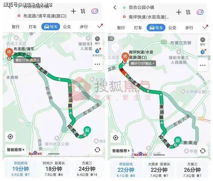 自驾方面,百合世纪广场北侧1公里是龙岗大道主干道,龙岗大道至东可通达龙岗其他区域,往南则可前往罗湖泥岗。项目东侧有丹平快速,西侧有清平高速,北侧有水官高速,根据地图测距,从项目出发,行驶至这3条快速/高速路口,车行距离分别约5公里、6.5公里、6.1公里。